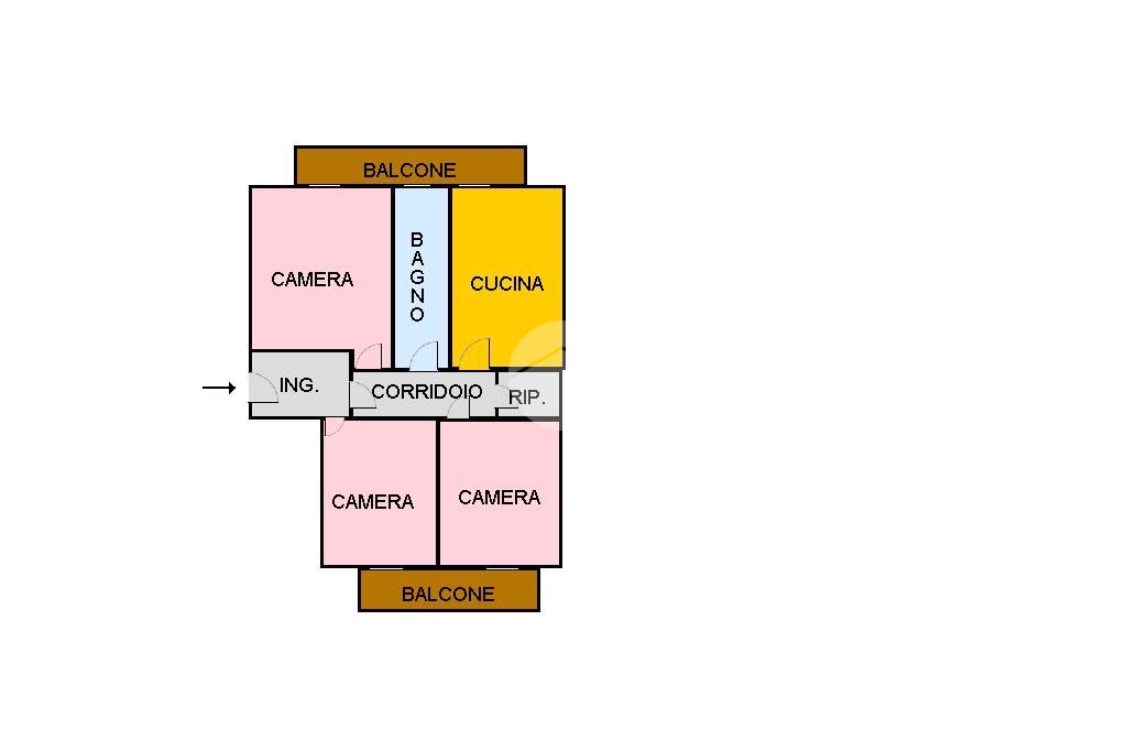 L'immobile, situato in un contesto tranquillo e ben servito, si apre con un comodo disimpegno che conduce al corridoio centrale, lungo il quale si sviluppano gli ambienti principali, tutti caratterizzati da dall'uscita su comode balconate. Sulla destra troviamo il soggiorno e la camera matrimoniale, mentre sulla sinistra troviamo una cameretta, bagno con finestra e cucina. A completare la soluzione, un comodo ripostiglio.