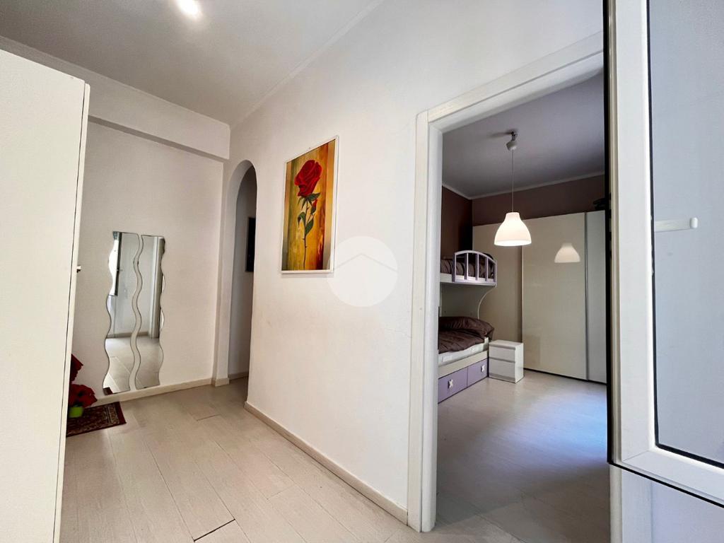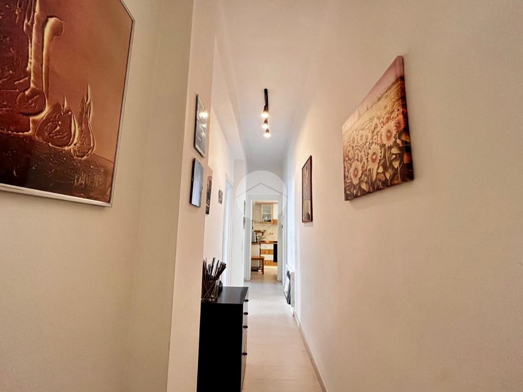 L'immobile si apre su un ampio disimpegno che accoglie e introduce ai vari ambienti della casa. Dal disimpegno, sulla destra, si accede alla prima camera, ideale come studio o cameretta. Proseguendo invece sulla sinistra si apre un corridoio dove sulla sinistra troviamo il salone e la camera da letto principale, entrambi con uscita su un’ampia balconata che dona grande luminosità a tutta la casa. In fondo al corridoio si trova la cucina, comoda e funzionale, mentre sulla destra è presente il bagno con finestra, ben arieggiato e confortevole.