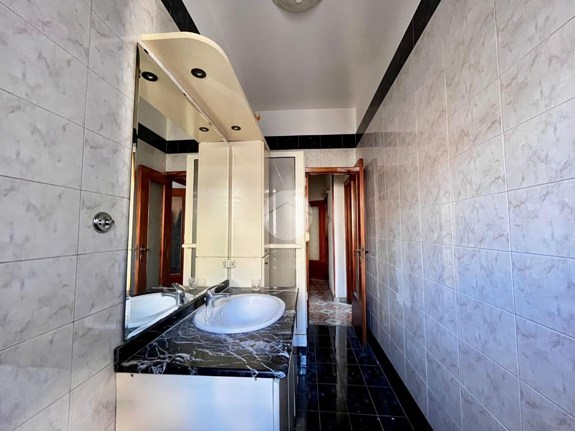 Proseguendo lungo il disimpegno si accede alla camera da letto principale con balcone, spaziosa e luminosa, seguita dalla cucina, anch’essa servita da balcone. La soluzione prosegue con una seconda camera, versatile e adatta a molteplici esigenze, e infine il bagno.