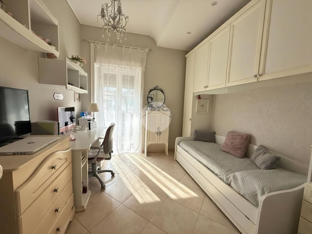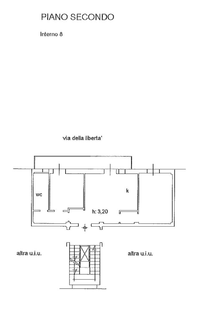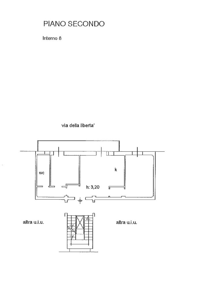 La distribuzione interna è semplice e funzionale: sulla destra è collocata una prima camera, mentre sulla sinistra si sviluppano la seconda camera e il bagno. L’immobile dispone di una balconata con affaccio su Via Libertà, con accesso dalla cucina e dalla cameretta.